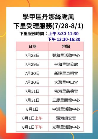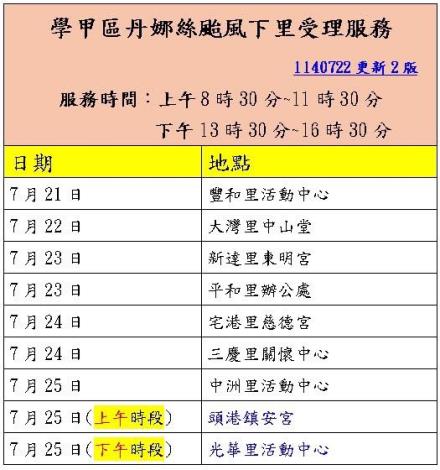 公告:丹娜絲颱風災損下里收件服務時間地點。