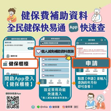 👉各縣市政府對於特定對象,有各種不同的補助項目,各補助機關會把符合資格的名單提供給健保署,在每月核計保險費時,就會直接免收或減收囉!