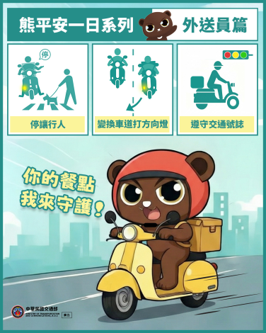 外送員守護餐點,更守護路權!確實停讓行人、轉彎預打方向燈、嚴守交通號誌,安全抵達最專業!